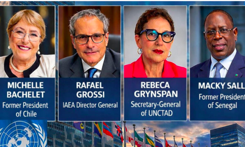 La Chilienne Michelle Bachelet, l’Argentin Rafael Grossi, la Costa-Ricaine Rebeca Grynspan et le Sénégalais Macky Sall seront soumis pendant trois heures chacun, mardi et mercredi, aux questions des 193 Etats membres et de représentants de la société civile.